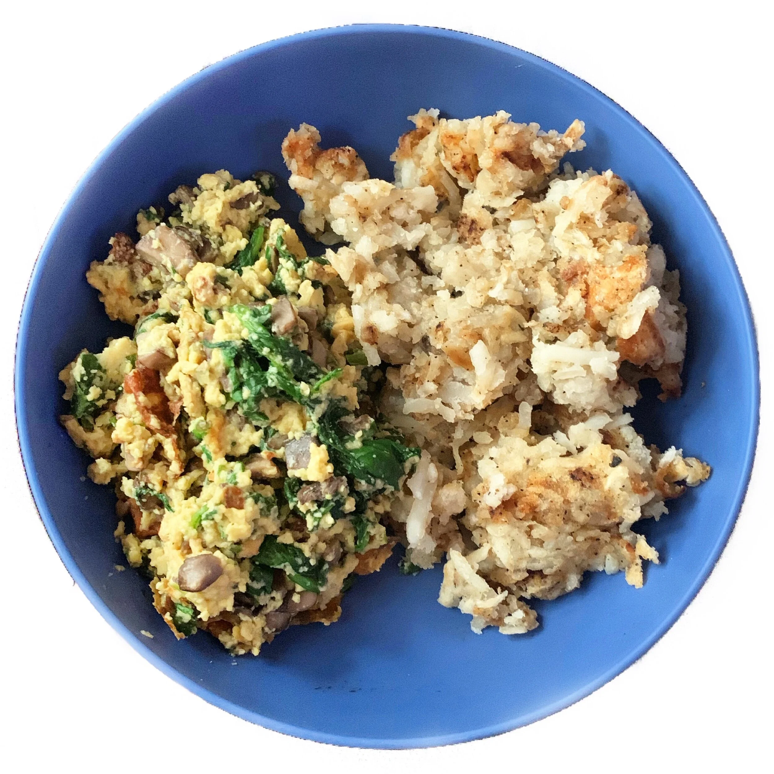 Love a vegan scramble and love that you can pretty much use anything you have on hand to whip up this for breakfast, lunch, or dinner. Play around with ingredients and make some hash browns or breakfast potatoes for the side.